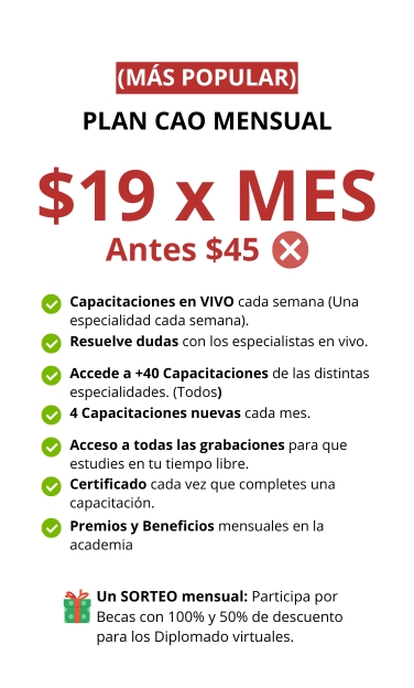 ✅ Cada Capacitación incluida en CAO tiene un valor individual entre $45 y $100 dólares.